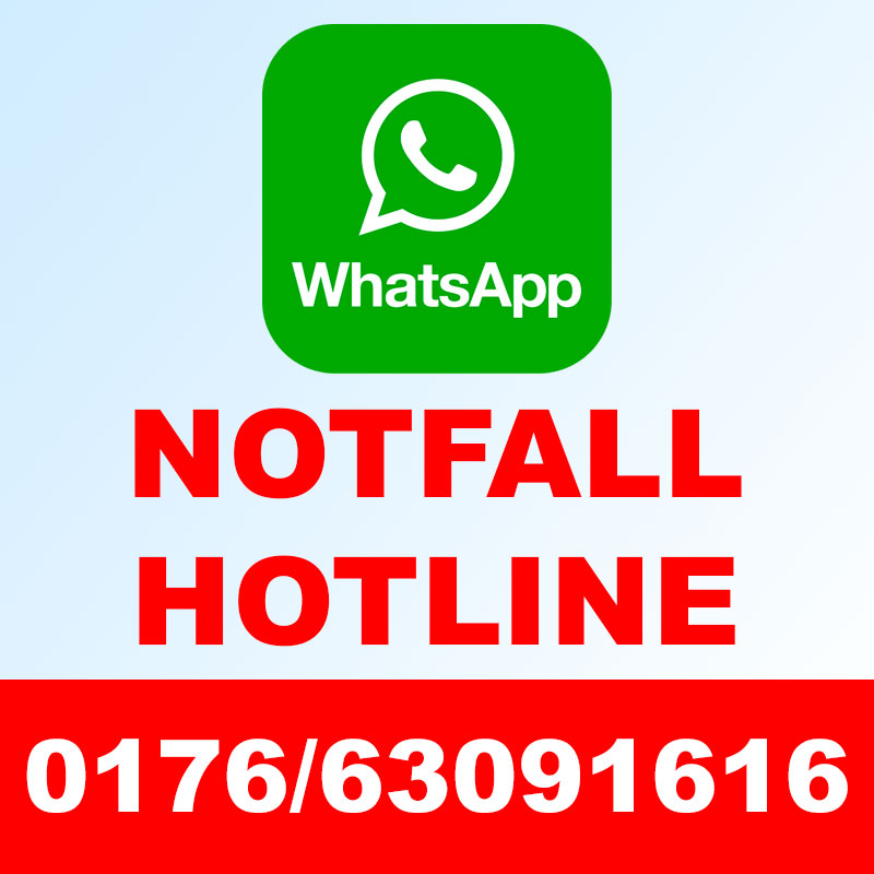 Beachten Sie bitte, dass Video- oder Sprach-Messages nicht abgerufen und beantwortet werden können. Sie erhalten in der Regel eine Antwort innerhalb von 24 Stunden über diese Hotline.